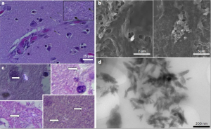 ? ? ? ?最后,研究人員通過電子顯微鏡觀察發(fā)現(xiàn),在大腦樣本中,大部分微塑料為100-200 nm長的碎片或薄片,因此具有穿透血腦屏障的能力,從而對大腦造成損傷。