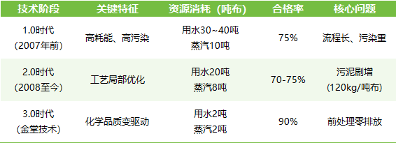 當(dāng)東南亞仍普遍使用1.0技術(shù)、歐美深陷2.0污泥困境時(shí),植根于中國(guó)原創(chuàng)理論(國(guó)作登字-2025-A-00053212)和核心專利的金堂V3.0技術(shù),已在中國(guó)建成成熟示范生產(chǎn)線。其卓越性能指標(biāo)(如噸布前處理用水僅2噸)遠(yuǎn)超國(guó)際買(mǎi)家設(shè)立的2040凈零目標(biāo),其意義遠(yuǎn)超技術(shù)本身: