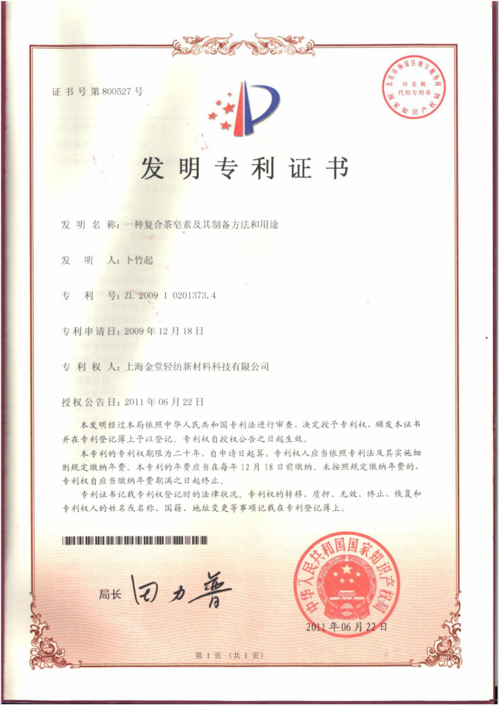摘要:本發(fā)明涉及一種復(fù)合茶皂素及其制備方法和用途。它由原料為1%~3%納米氧化鈦、12%~18%茶皂素、1%~5%甲基纖維素、23%~45%天然皂粉、3%~5%硅藻土、6%~12%海泡石、5%~10%碳酸鈉與適量水調(diào)配而成;其制備方法主要包括納米氧化鈦的分散、無粉塵復(fù)合、造粒合成,成品經(jīng)篩濾網(wǎng)均質(zhì)成顆粒狀出料。其用途在于單一或同時替代燒堿、雙氧水,作為紡織、皮革、造紙、污水處理、日用化工行業(yè)領(lǐng)域的處理劑。可滿足生產(chǎn)加工業(yè)原來對使用燒堿、雙氧水的工藝需求,簡化工藝流程,避免設(shè)備腐蝕和物料損傷,提高產(chǎn)品質(zhì)量,廢水環(huán)?;欧?,保證人身安全,降低生產(chǎn)成本,節(jié)約能源,節(jié)省工時,實現(xiàn)了生態(tài)環(huán)保化安全生產(chǎn)作業(yè)。