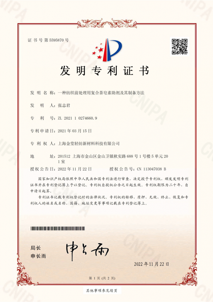 專利權(quán)人:上海金堂輕紡新材料科技有限公司
