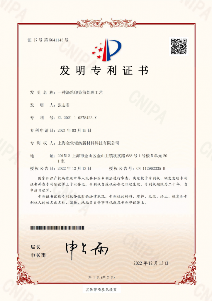 專(zhuān)利權(quán)人:上海金堂輕紡新材料科技有限公司
