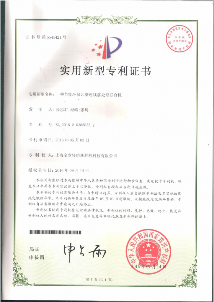 專利權(quán)人:上海金堂輕紡新材料科技有限公司