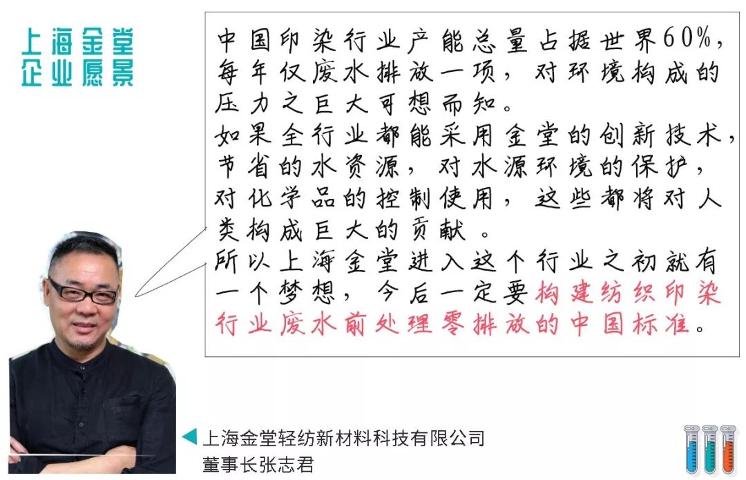 ? ? ? 上海金堂輕紡新材料科技有限公司董事長張志君表示:“如果全行業(yè)廣泛采用該項技術(shù),預(yù)計可節(jié)約用水45億噸水,滿足2個上海市城市居民一年用水量。