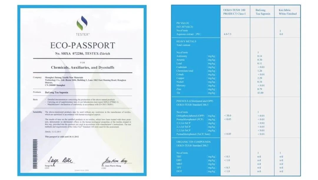 卜公茶皂素獲得歐盟生態(tài)紡織品證書(shū)