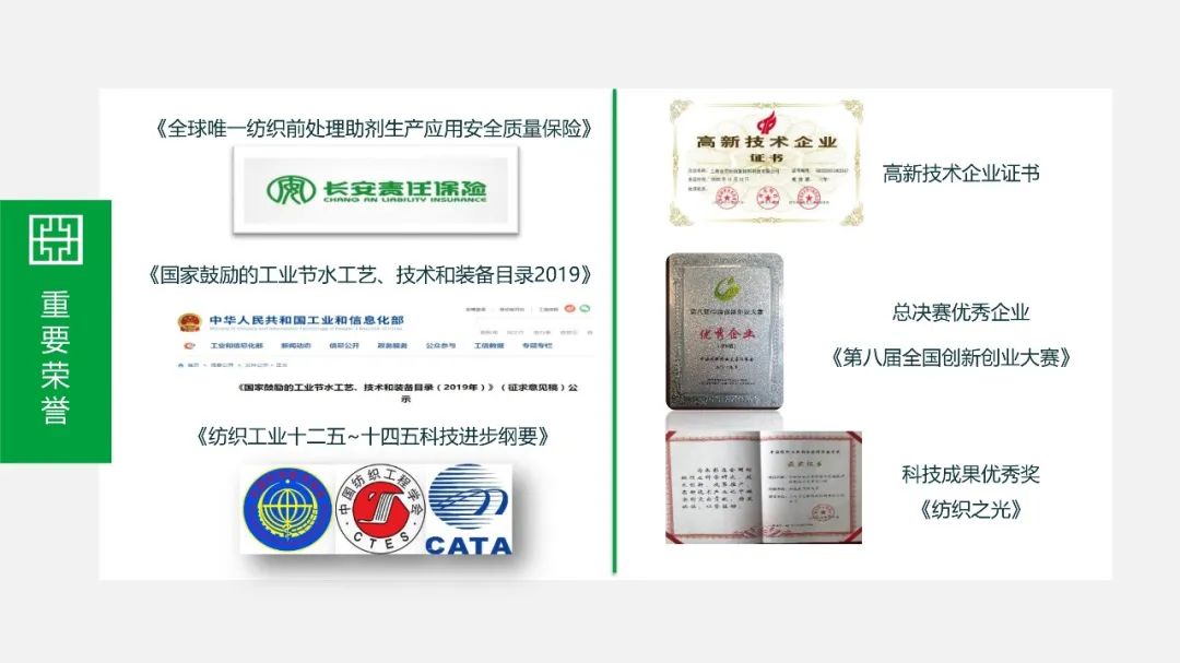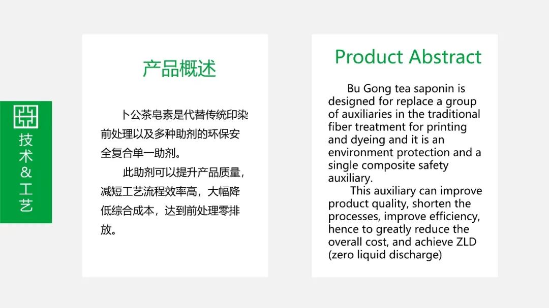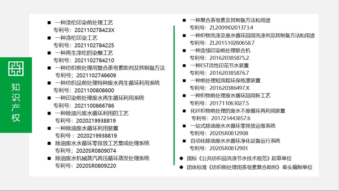 ? ? ? 以全球首創(chuàng)紡織印染低碳前處理工藝技術(shù)及產(chǎn)品專利為例,通過單一新材料助劑替代傳統(tǒng)工藝多種紡織印染前處理化學(xué)品,滿足了紡織生產(chǎn)企業(yè)實(shí)際需求。