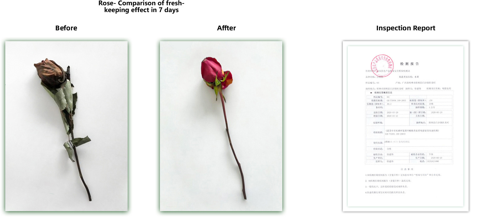 It can effectively reduce the gratuitous waste of fresh products. The use of new technology on the packaging, without direct contact with fruits, vegetables, flowers, etc. It can extend product freshing period 2 to 3 times, safe and sanitary.