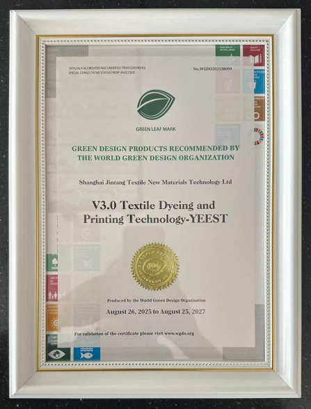 ? ? ?近日,公司憑借其前瞻性的綠色創(chuàng)新實(shí)踐,成功獲得世界綠色設(shè)計(jì)組織(WGDO)推薦的“綠葉標(biāo)”認(rèn)證,成為全球紡織印染行業(yè)首家獲此殊榮的企業(yè)。這不僅填補(bǔ)了行業(yè)在國際綠色設(shè)計(jì)認(rèn)證領(lǐng)域的空白,更以中國智造的實(shí)力,為全球紡織業(yè)的可持續(xù)發(fā)展注入新動(dòng)能。